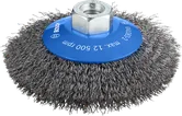Los cepillos de copa estándar funcionan bien en superficies más grandes, pero no siempre son la mejor opción cuando es necesario limpiar una pieza de trabajo con zonas de difícil acceso. El duradero cepillo biselado PRO Metal clean tiene una forma inclinada, para que puedas llegar más fácilmente a los lugares más estrechos.