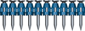 - Široká škála hřebíků s různými délkami pro řadu upevňovacích aplikací