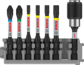 - Prodloužená torzní zóna absorbuje namáhání točivým momentem na hrotu šroubovacího bitu