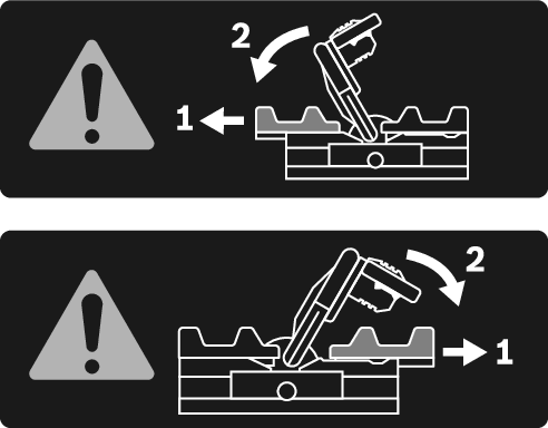 | نشان دهنده جهت چرخش پین SDS برای سفت کردن تیغه اره (خلاف جهت عقربه های ساعت) و برای شل کردن تیغه اره (در جهت عقربه های ساعت). |
