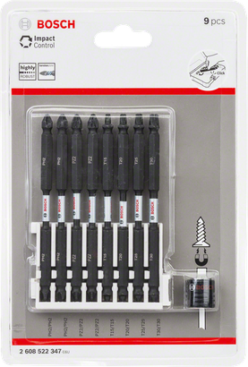 | 2 608 522 347 | PH2 (2x); PZ2 (2x); T15, T20, T25, T30 | PH2; PZ2; T15; T20; T25; T30 | 110 | Sættets indhold: PH2 (2x), PZ2 (2x), T15, T20, T25, T30 | 9 Stk. | Køb nu |