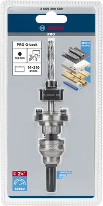 Vi har udviklet Q-Lock for at hjælpe fagfolk, der bruger hulsave, med at håndtere et tilbagevendende problem: Den tid det tager at skifte en hulsav. PRO Q-Lock holderen har et ¼"-unbrakobeslag, der giver brugeren mulighed for hurtige skift af hulsave og centerbor uden værktøj. I kombination med adaptermøtrikken kan holderen acceptere hulsave med diametre på mellem 14 og 210 mm.