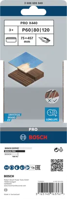 PRO X440 slibebånd, 75 x 457 mm, G60, G80, G100, 3 stk.