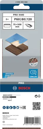 PRO X440 slibebånd, 75 x 508 mm, G60, G80, G100, 3 stk.