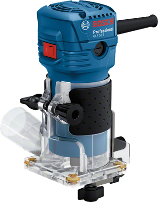GLF 55-6 er udstyret med en 550-W-motor med 33.000 o/min, som giver hurtige og rene skæreresultater, samt et tandstangssystem, der gør det nemt og hurtigt at ændre skæredybde.