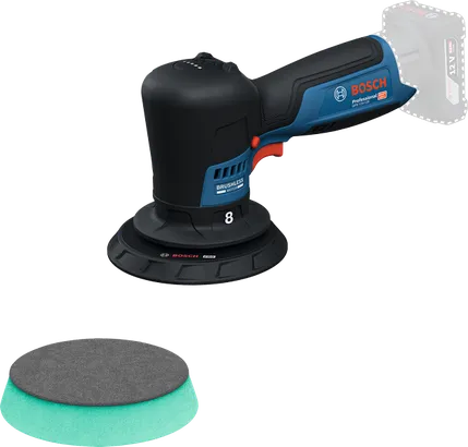 GPX 12V-125 har en 125 mm polerskive med en gaffelnøgle til nem udskiftning af skiver. Den fungerer med en bane på 8 mm.