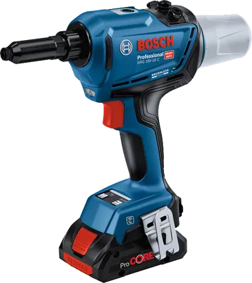 Den kraftfulde, batteridrevne popnittepistol GRG 18V-16 C Professional giver ubegrænset mobilitet uden ledninger og ekstraudstyr, som et pneumatisk værktøj har. Med enklere opsætning og mindre vedligeholdelse er den også mere omkostningseffektiv. Denne popnittepistol er lige så stærk som et pneumatisk værktøj, og den isætter nemt rustfri stålnitter med Ø 3 til 6,4 mm i krævende opgaver – og det kræver kun én batteriopladning at isætte over 1.000 nitter. Brugeren kan vælge automatisk eller manuel funktion afhængig af, hvad de foretrækker. Og for at reducere nedetid sikrer tilslutning til Bosch-appen, at der er styr på både værktøjsvedligeholdelse og produktion.