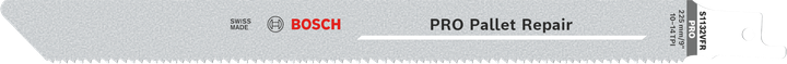 The PRO Pallet Repair S1132VFR blade is built for endurance and comfortable, low vibration cutting. Bosch's innovative shank stabiliser design adds significant robustness, the reverse tip prevents jarring and blade bending from frontal impacts, and the blade combines hardened HSS teeth with a highly flexible HCS body.