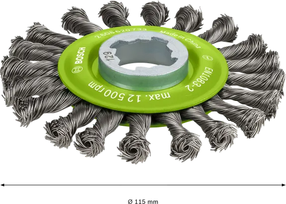 El cepillo circular PRO Stainless Steel heavy es un accesorio duradero que te gustará tener a mano en tu taller metalúrgico. La hemos equipado con alambre trenzado premium para asegurarnos de que pueda hacer frente a las tareas de limpieza más pesadas con eficiencia. El cepillo circular de alambre es una gran elección cuando es necesario desbarbar, desincrustar y limpiar soldaduras en superficies, bordes y ranuras de piezas de trabajo de acero inoxidable y metales no ferrosos.