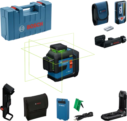 El GLL 80-33 G Professional es un intuitivo nivel láser para las tareas más precisas de alineación y nivelación. Con una clasificación IP65 y una carcasa resistente y reforzada con goma y ventanas de protección láser, está diseñado para resistir el polvo y el agua, para que puedas trabajar con confianza incluso en los lugares de trabajo más exigentes. El nuevo diseño del teclado permite una selección sencilla de cada línea láser y ofrece un modo adicional de ahorro de energía para una mayor duración de la batería. Además, una alimentación doble brinda la flexibilidad para cambiar entre la batería de iones de litio BA 3.7V 3.0Ah XL y las pilas alcalinas AA, para que no tengas que preocuparte por tiempos de inactividad debido a una batería descargada.