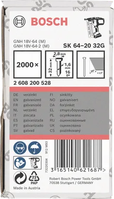 2 608 200 532 GNH 18V-64, GNH 18V-64 M, GNH 18V-64-2, GNH 18V-64-2 M, GSK 18.0 V-LI Professional SK64-20 G 1,6 2,8 1,35 2000 tk Leia müügiesindus