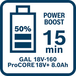 Rohkem võimsust, pikem tööaeg ja toote kasutusiga* suure jõudlusega rakendustes – meie ProCORE18V+ Professional aku kasutab uusimat liidesteta akutehnoloogiat. Tavalistel akudel on mitme liidesega elemendid, mis kasutavad voolukanalina ainult kahte liidest. See on kitsaskoht, mis suurendab aku takistust. Murranguline liidesteta akutehnoloogia lahendab selle kitsaskoha. Pelgalt kahe voolukanali asemel on meie uuel liidesteta akul lugematu arv paralleelseid voolukanaleid, mis tagavad otsese elektrikontakti elektroodide ja elemendi ümbrise vahel. Tulemus: väiksem takistus, vähem soojust ja pikem tööaeg. ProCORE18V+ 8.0Ah Professional on meie kahekihiline aku, millel on oma klassi pikim tööaeg. See tagab suure jõudlusega akurakenduses võrreldes olemasoleva ProCORE18V 8.0Ah Professional akuga kuni 71%** pikema tööaja. BITURBO tööriista puhul tähendab see 2000 W võrgutoitel seadmega sarnast võimsust. Seetõttu on Bosch Professional BITURBO tööriistade puhul liidesteta ProCORE18V+ 8.0Ah Professional ideaalne aku suure võimsust nõudvate ja raskete rakenduste jaoks.