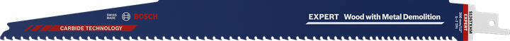 Bosch arendas lõige karmimate lammutustööde jaoks sarja EXPERT Wood with Metal Demolition. Hammaste astmeline vahe tagab selle, et materjali jämeduse muutused ei tuleks üllatusena; individuaalselt tugevdatud hammaste lõikeõlad suudavad vastu seista puitu sisestatud ülitugeva terase halvimale mõjule; ja kõike seda toetab karbiidi võime läbistada kõike, mis selle teele jääb.