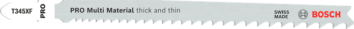 جهاز PRO Multi Material thick and thin T345XF مصنوع من ثنائي المعدن: يحتوي على شريط أسنان من الفولاذ عالي السرعة (HSS) متصل بهيكل أكثر مرونة من الفولاذ عالي الكربون (HCS) للحصول على الصلابة والمرونة التي تحتاجها للتعامل مع الخشب والمعدن. تضمن الأسنان الجانبية المطحونة لشفرة المنشار الحصول على قطع سريع بينما يسمح لك التباعد التدريجي بين الأسنان بقطع مجموعة كبيرة من المواد. يبلغ طول الشفرة 132 ملم، مما يعني أنه يمكنك قطع قطع عمل يصل سمكها إلى 65 ملم.