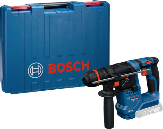 The Bosch GBH 18V-18 X Professional rotary hammer is ideal for tradespeople such as cabinet installers, carpenters, glaziers, and facility managers who work with concrete, wood, and metal. It is the lightest Bosch Professional cordless hammer in the 18V range and delivers full performance with just an 18V 2.0 Ah battery.