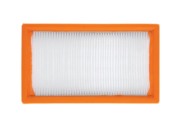 - Filtro de alto rendimiento. Robusto filtro plisado plano lavable con revestimiento adicional de politetrafluoroetileno (PTFE) para polvo fino de clase H