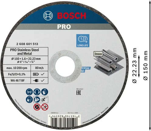 | 2 608 601 513 | WA 46 T BF | 150 | 22.23 | 1.6 | 1 Pcs | £1.75 | Buy from a Bosch Partner | |