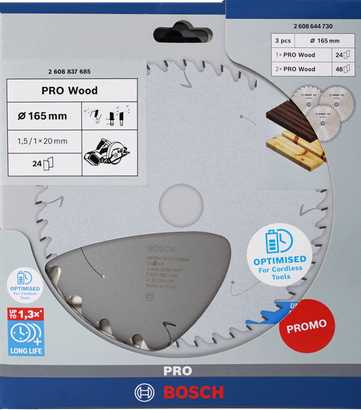 PRO Wood Circular Saw Blade 165 mm Cordless 3 pcs Promo Pack