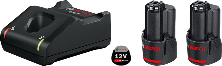 - GBA 12V 2.0Ah: Compact battery designed for the Bosch 12 V tool range