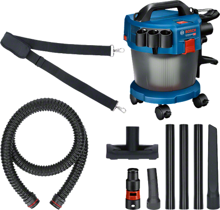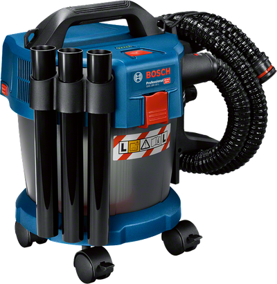 This is Bosch's cordless 18 V L-class vacuum cleaner with full suction power. It features a rotational airflow technology that prevents the filters from clogging and provides persistent and uninterrupted suction power. The vacuum's lightweight and compact design enables easy transportation and storage. Its bag-less design and numerous accessories (included) make it ideal for a variety of dry as well as wet applications. It is compatible with the Bosch Click & Clean System as well as with all Bosch Professional 18 V batteries and chargers (Professional 18V System). Also compatible with AMPShare, the multi-brand battery alliance.