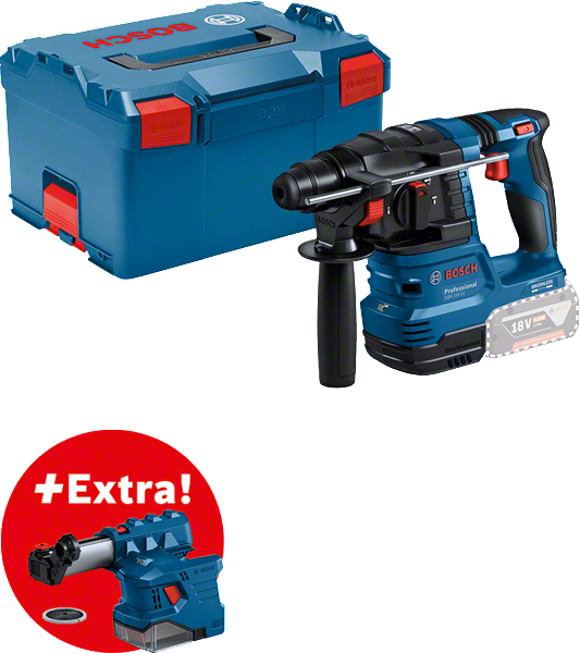The GBH 18V-22 Professional is packed with power and features, elevating the drilling experience to a next level, with extra efficiency, safety and control. More holes are drilled per fully charged battery and stable power output delivered by its potent Bosch 18V brushless motor combined with constant speed. Includes enhanced safety against accidental jams and reduced vibration exposure due to KickBack Control and Vibration Control, respectively. It also contributes to a dust-free work condition through its attachable Auto Power GDE 18V-12 /GDE 12 extractor.