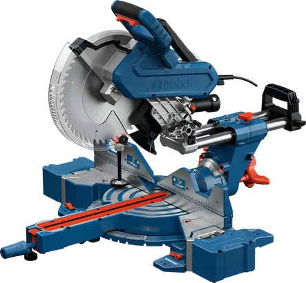The corded GCM 340-305D Professional miter saw has a powerful motor, a detachable workpiece support, an effective dust management system, an integrated LED light with cutting line indication, and a horizontal handle for left- and right-handed use. It is also compatible with the Bosch stand and vacuum cleaner.