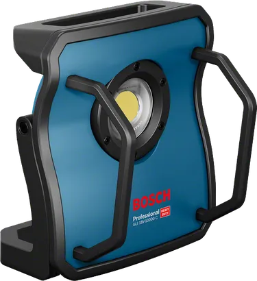 The GLI 18V-10000 C Professional is Bosch's first floodlight of its kind in the 18 V category. Its superior LED is capable of producing up to an impressive 10,000 lumens of superior brightness – even brighter than 500 W halogen floodlights. The floodlight is extremely robust due to its solid metal body that is shielded with a shock-absorbing rubber frame and heavy-duty safety bars. It features a User Interface with brightness indication and charge level indicator as well as a Bluetooth connectivity module that offers convenient remote control and lighting adjustments via the MyTools tile in the Toolbox app. It has three brightness settings, flexible adjustment angles, and a 5/8" tripod thread, allowing for quick adaptation to any work situation. This floodlight is excellent for lighting up entire working areas. It is compatible with all Bosch Professional 18 V batteries and chargers (Professional 18V System). Also compatible with AMPShare, the multi-brand battery alliance.