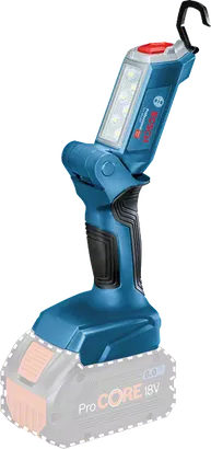 The GLI 18V-300 Professional is Bosch's long-lasting handheld stick light with 300 lumens in the 18 V category. It includes a hanging hook and five adjustment angles for flexibility in illumination. Its shape and the six powerful LEDs make it ideal for lighting up narrow spaces. This handheld stick light is designed with an ergonomic shape and soft grip for comfortable handling. It is compatible with all Bosch Professional 18 V batteries (Professional 18V System).