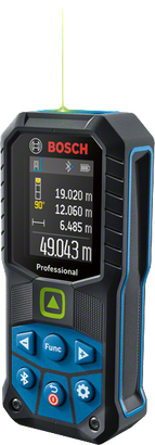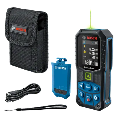 The laser measure GLM 50-27 CG Professional offers a superior visibility of the laser spot, highly durable design, and fast documentation. While its green laser spot appears more visible compared to red laser, it is especially qualified for long-distance measurements in bright indoor conditions. Thanks to the combination of an IP65 protection-certified design and a shock-absorbing rubber casing, it withstands 1.5-metre drops even on hard concrete and rough jobsites. Bluetooth® connectivity and the Bosch MeasureOn App ensure quick documentation and transfer of measuring results in just a flash.