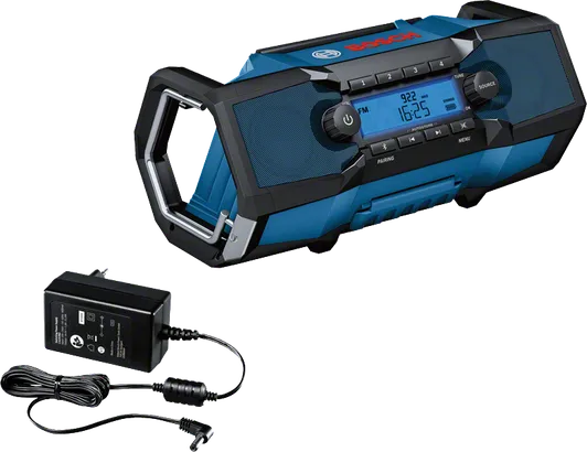 Αυτή η μονάδα είναι ιδανική για την παροχή ραδιοφωνικής ψυχαγωγίας στα εργοτάξια καθώς και για μουσική από smartphone. Είναι συμβατό με τις μπαταρίες Bosch Professional 18 V (1,5 – 8 Ah). Συμβατό με το Bosch Professional 18V System και με τη συμμαχία μπαταριών πολλαπλών μαρκών AMPShare.