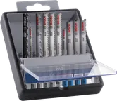 | 2 607 011 943 | PRO Wood precise T 144 DP (1x); PRO Hardwood clean curve T 101 AOF (1x); PRO Hardwood fast T 144 DF (1x); PRO Hardwood clean T 101 BF (2x); PRO Hardwood clean rev.T 101 BRF (1x); PRO Metal curve T 118 EOF (1x); PRO Metal thin T 121 GFC (1x); PRO Metal medium T 121 AFC (1x); PRO Metal thick T 121 BFC (1x) | 5; 1.5; 5; 3; 3; 1.5; 0.5; 1; 2.5 | 50; 15; 50; 30; 30; 4; 1.5; 3; 6 | 100 | 10 יח' | Find a local dealer |