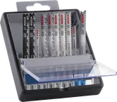 | 2 607 011 944 | PRO Wood precise T 144 DP (2x); PRO Hardwood clean curve T 101 AOF (1x); PRO Hardwood fast T 144 DF (2x); PRO Hardwood clean T 101 BF (2x); PRO Hardwood clean rev.T 101 BRF (1x); PRO Metal curve T 118 EOF (1x); PRO Metal thick and thin T 123 XF (1x) | 5; 1.5; 5; 3; 3; 1.5; 1.5 | 50; 15; 50; 30; 30; 4; 8 | 100 | 10 יח' | Find a local dealer |