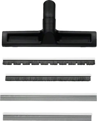 - Inserts include a rubber lip for water surfaces, a brush for smooth surfaces and a plastic head for carpets
