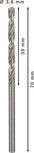 رؤوس ثقب ملتوية PRO Metal HSS-G بطول قياسي مقاس 3.6 × 39 × 70 مم من 10 قطع