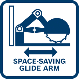 - Glide arm´s hinge design makes the mitre saw compact from front to back