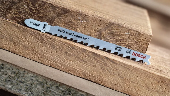 شفرة المنشار الكهربائي Bosch T144DF لقطع الأخشاب الصلبة بسرعة.