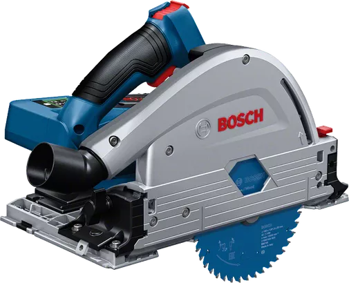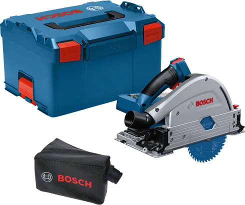 This plunge saw is intended for plunge cutting in wood, composites, board and panel materials, aluminium, and acrylic glass. It can be used with dust bags and is compatible with the Bosch Click & Clean System as well as the Bosch, Festool, Mafell, and Makita guide rail systems and with all Bosch Professional 18 V batteries and chargers (Professional 18V System). For maximum power use ProCORE18V ≥ 5.5 Ah. Also compatible with AMPShare, the multi-brand battery alliance.