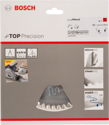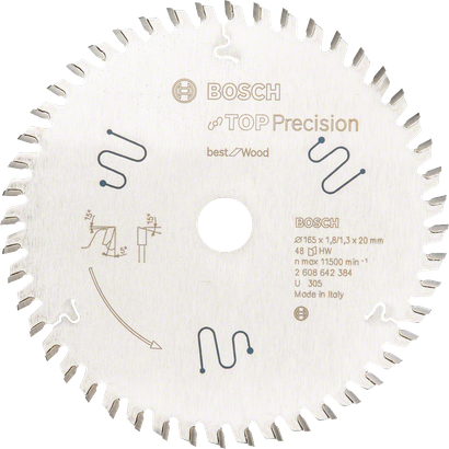 - Пильные диски Best for Wood с геометрией зубьев ATB: большое количество зубьев — чистые пропилы, малое — для массива