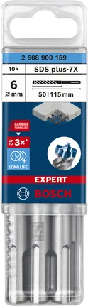 رأس المثقاب المطرقي EXPERT SDS plus-7X مقاس 6 × 50 × 115 مم بعدد 10