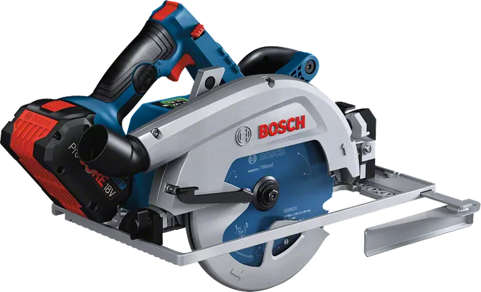It is perfect for use in wood and wooden composites. Use this saw with the Bosch Click & Clean dust extraction system, dustbags, connectivity module GCY 42 Professional, and FSN guide rails. The saw also fits on the guide rails of Festool Makita and Mafell. It is compatible with all Bosch Professional 18 V batteries and chargers. For maximum power use ProCORE18V ≥ 5.5Ah. Also compatible with AMPShare, the multi-brand battery alliance.