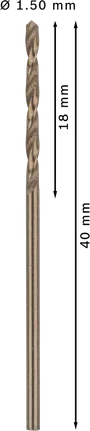 PRO Stainless Steel HSS-Co Spiralinio grąžto antgalis, 1,5x18x40 mm