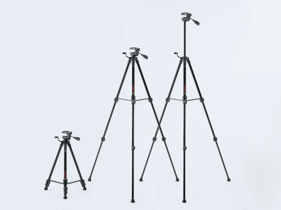 Trépied Bosch avec hauteur réglable et poignée.