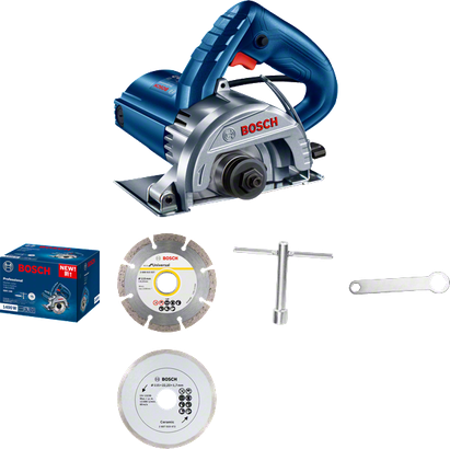 Coupe-marbre Bosch GDC 140 avec lames et clé.