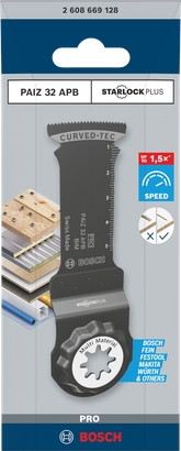 Professionals who value the multitool's ability to make plunge cuts, flush cuts, and precise cut-outs need an equaly versatile blade that excels at these tasks: the PRO PAIZ 32 APB is not only highly capable in many materials, but also offers high cutting speed for maximum efficiency.