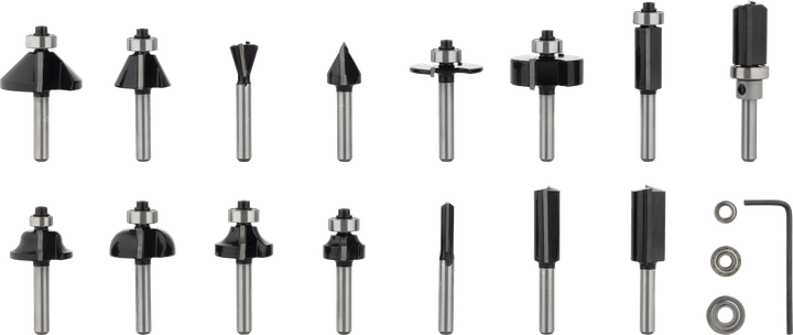 As fresas do Conjunto misto de fresas para tupia PRO, 15 unid., possuem serras fabricadas em carboneto de alta qualidade soldado ao corpo de aço para maior resistência, durabilidade e precisão. As fresas direitas possuem uma serra adicional na ponta para cortes de perfuração suaves. A fresa com um gume de corte largo de 30 mm permite-lhe cortar sulcos extra profundos. As fresas possuem marcações a laser resistentes com informações de segurança e detalhes técnicos para garantirem que as encontra de forma rápida e fácil. O conjunto é fornecido numa caixa de plástico resistente concebida para ajudá-lo a remover as fresas de forma mais fácil e segura. Inclui uma chave hexagonal e 3 rolamentos de esferas – caso necessite de substituir um rolamento desgastado.