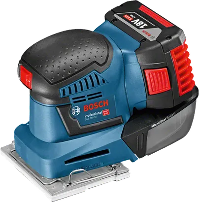 A GSS 18V-10 Professional também inclui uma caixa para o pó com um Sistema de microfiltro da Bosch integrado, pratos intercambiáveis e foi concebida para permitir a utilização com uma só mão.
