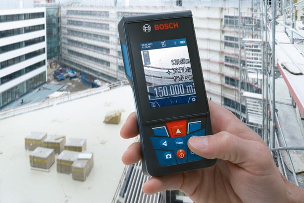 This robust outdoor laser measure has a digital camera viewfinder with a zoom function for accurately measuring distances up to 150 m. Measurements and pictures are automatically saved and easy to read thanks to a large, high-contrast 2.8" IPS colour display that rotates between portrait and landscape view. For convenient documentation, all data can be transferred via Bluetooth to the Bosch MeasureOn App or via USB connection to a PC. With IP54 protection, scratch-resistant display glass, and user-friendly interface, this laser measure is the handy all-rounder for demanding jobsites.
