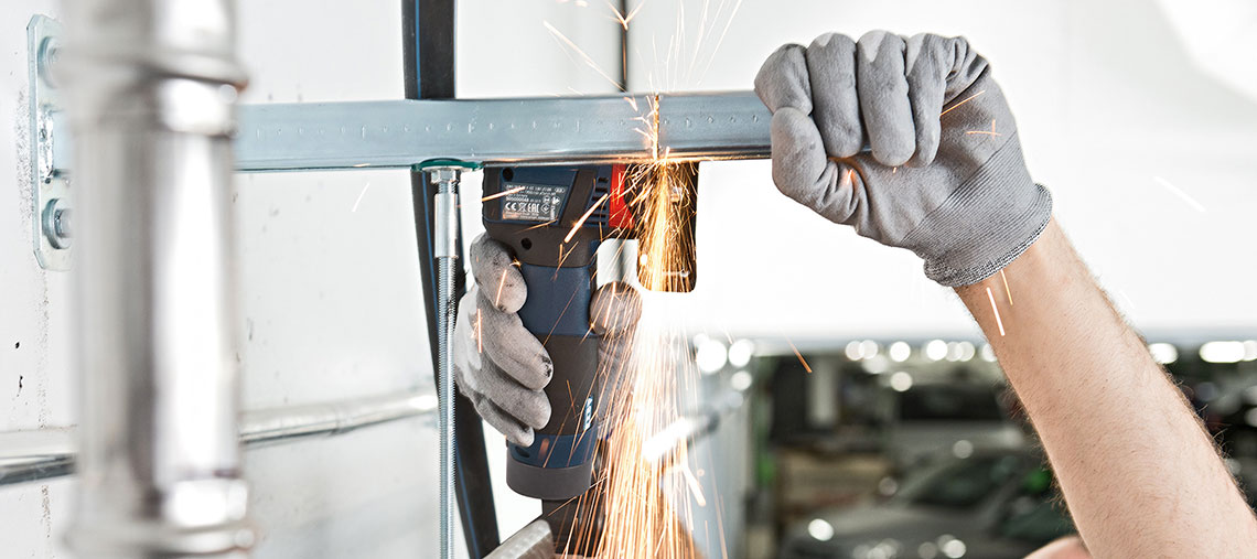 De kleine krachtpatser is met een gewicht van slechts 900 gram zeer licht en ligt goed in de hand bij het werken. Samen met de speciaal voor doorslijpklussen geoptimaliseerde bouwvorm is de GWS 10,8-76 V-EC Professional overal inzetbaar, ook op krappe en moeilijk toegankelijke plekken. In tegenstelling tot gewone haakse slijpmachines is de schijf niet horizontaal, maar verticaal aangebracht. Door dit ergonomische voordeel kan hij zeer eenvoudig en gecontroleerd worden geleid en kan hij ander gereedschap zoals de handzaag vervangen. Een krachtige, borstelloze EC-motor levert een hoog vermogen, maakt de compacte, lichte constructie mogelijk en zorgt voor een hoge bewerkingssnelheid. De EC-motor is onderhoudsvrij en garandeert een lange levensduur van de machine. Bij de verdere uitrusting van de GWS 10,8-76 V-EC Professional hoort een beschermkap, die eenvoudig en comfortabel zonder gebruik van gereedschap kan worden ingesteld. Als de haakse slijpmachine wordt uitgeschakeld, stopt de schijf in minder dan een seconde.