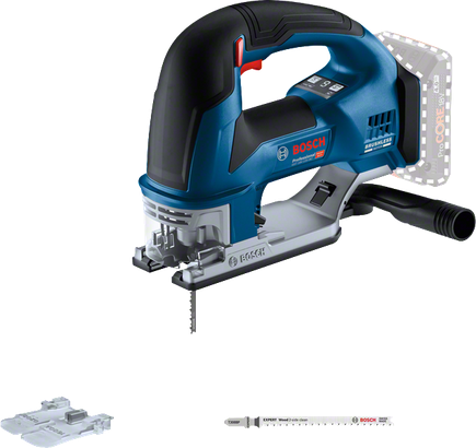 De GST 18V-155 SC Professional (met beugelgreep) is uitgerust met een borstelloze motor en een goed gebalanceerd gereedschapsontwerp. De handgreep aan de bovenkant en variabele snelheidsregelaar zorgen voor een perfecte beheersing van het gereedschap. De zaagbladgeleiding voorkomt dat het blad zelfs in kleine bochten buigt en ondersteunt het werk met perfecte precisie. Het gereedschap is geschikt voor gebruik met externe stofafzuiging. De grote uitwerphendel voor zaagbladen en Drop Control-functie zorgen voor een goede bescherming van de gebruiker.