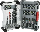 | 2 608 521 U80 | 25 mm Screwdriver Bit: PH1; PH2 (4x); PH2R; PZ2 (3x); PZ3; T15; T20 (3x); T25 (3x); T30 (2x); T40. 55 mm Screwdriver Bit: PH2; PZ2; T15; T20; T25; T30. 60 mm Bit Holder: Quick Change Bit Holder. Metal HSS-G Impact Twist Drill Bit: 2; 3; 4; 5; 6; 7; 8; 10 mm. | 35 Pcs | Find a local dealer |